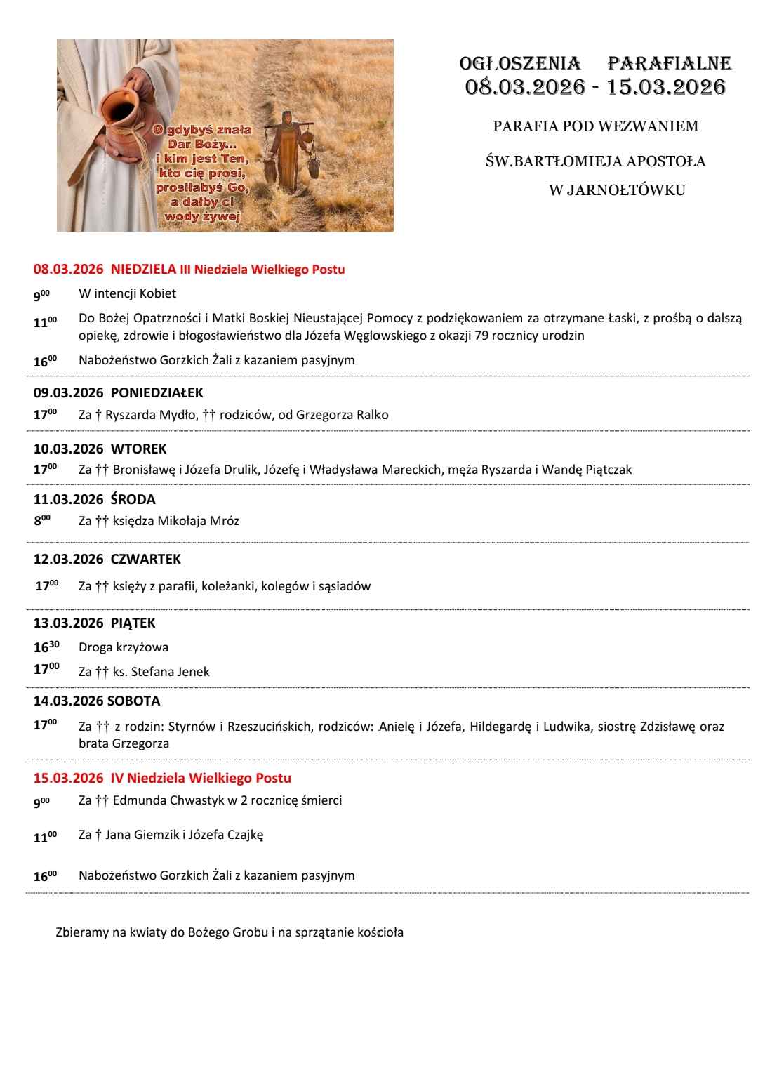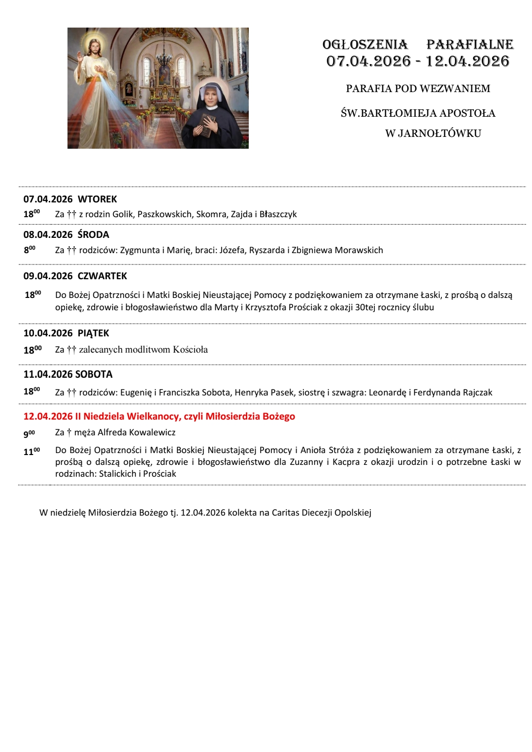 9:00, 11:00 w kościele parafialnym