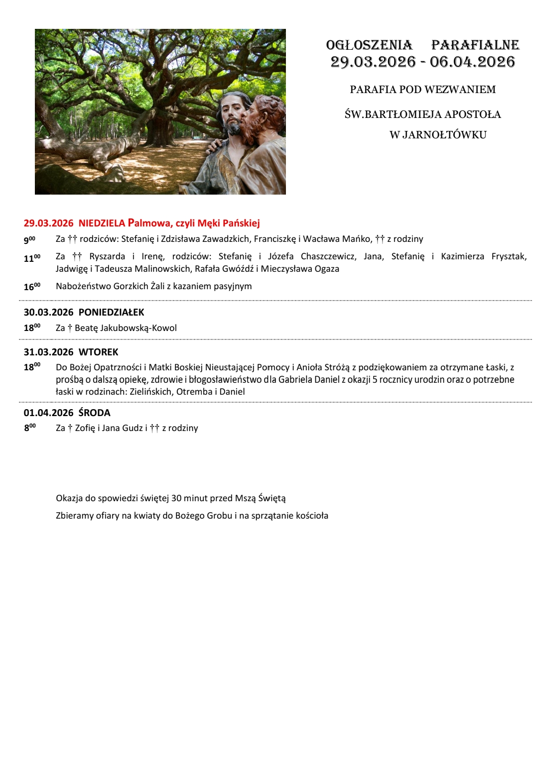Msze św. niedzielne są odprawiane w godzinach: