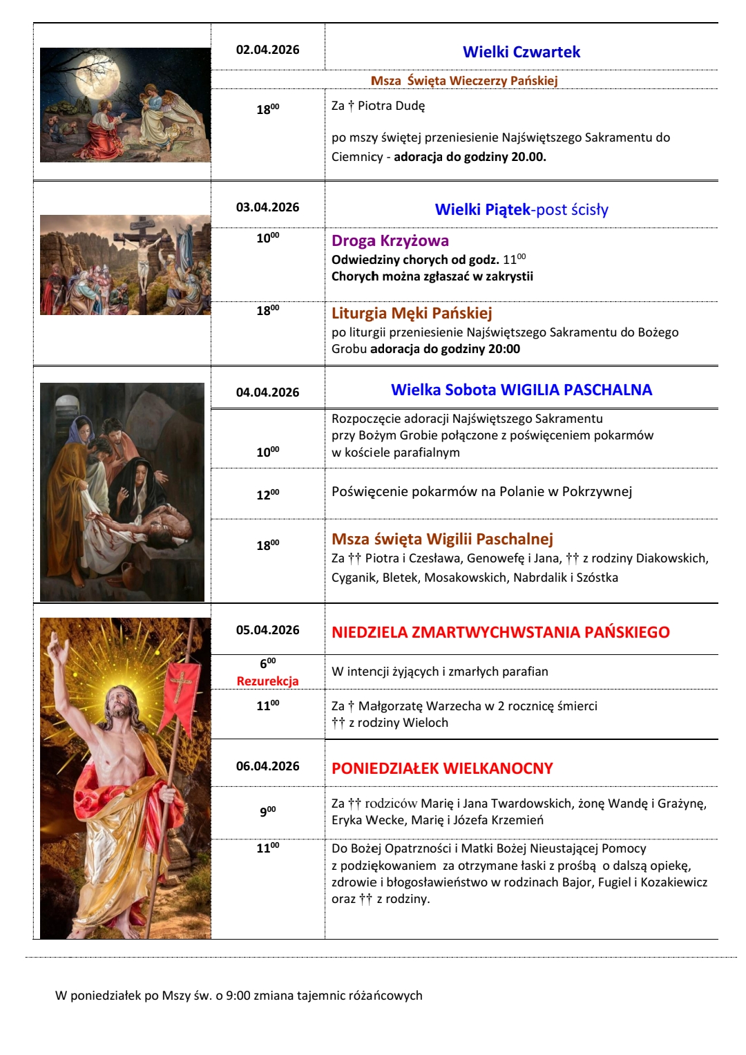 9:00, 11:00 w kościele parafialnym